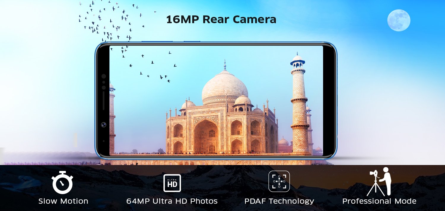 • 16MP primary camera with face beauty, group selfie, bokeh mode, liveon, watermark features and 24MP front facing camera